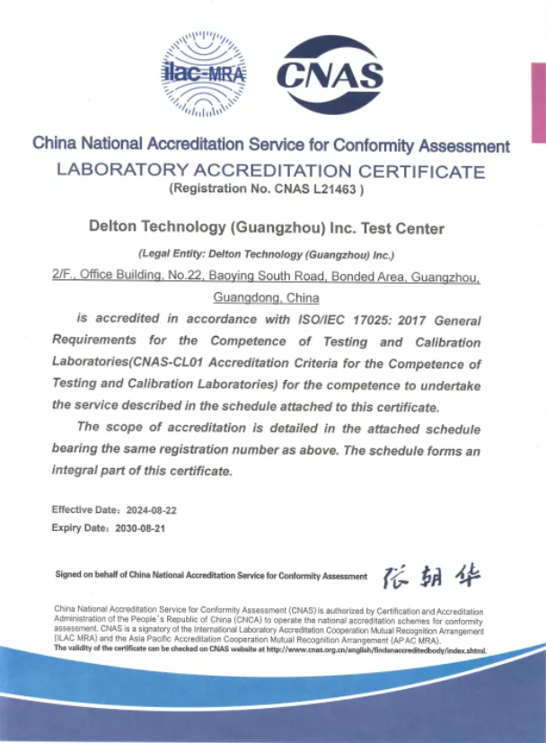 爱体育手机登录入口检测中心(以下简称“广合科技检测中心”)顺利通过中国合格评定国家认可委员会(“China National Accreditation Service for Conformity Assessment”, CNAS)的认可,成功获得CNAS认可标识和认可证书(注册号:CNAS L21463),标志着我司在检测技术能力和管理水平上迈上了新的台阶。